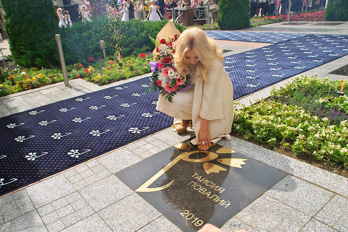 Звезда Повалий с цветком василька стала уже пятнадцатой на этой площади. Сегодня вечером певица примет участие в гала-концерте открытия XXVIII Международного фестиваля искусств «Славянский базар в Витебске», где получит премию из рук Александра Лукашенко.