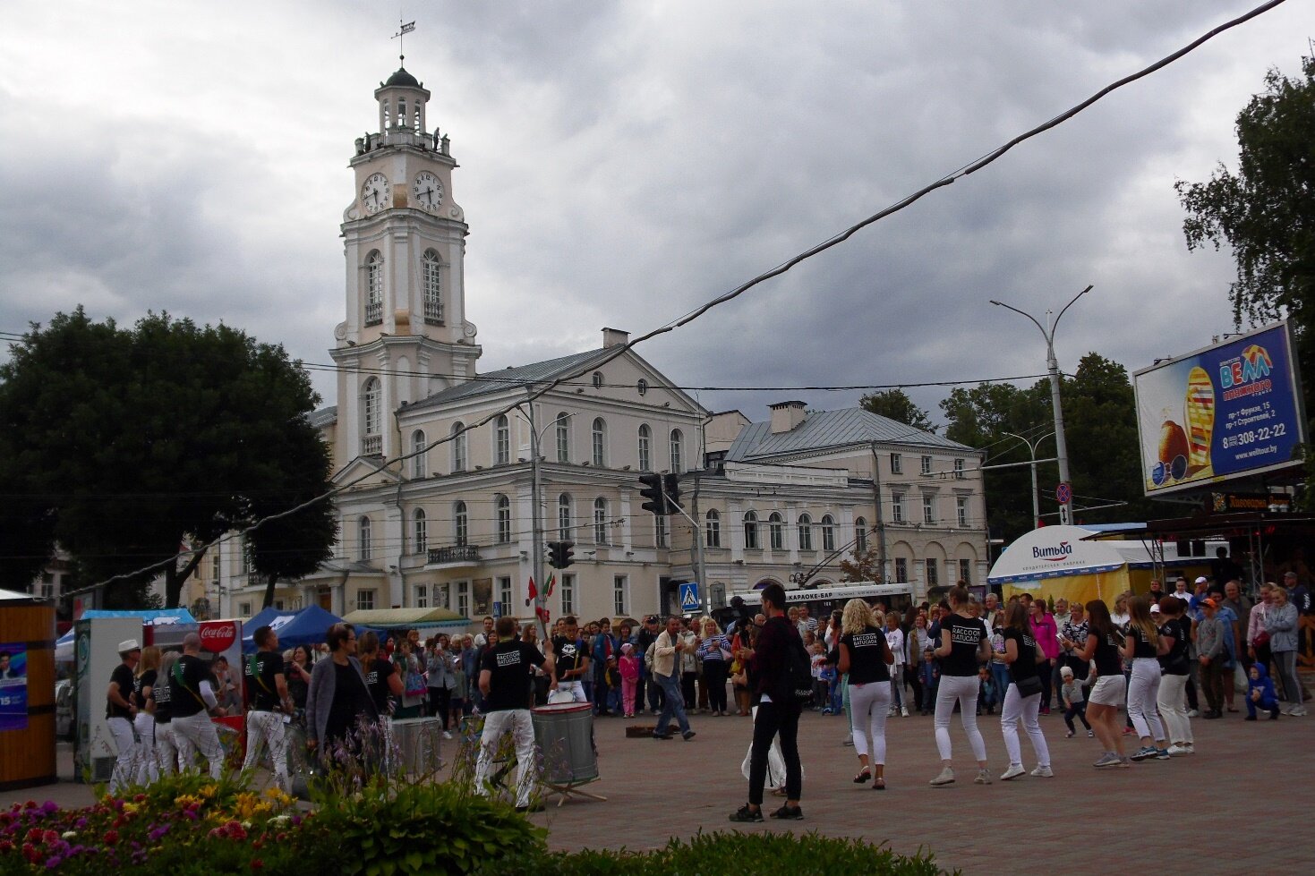 В день открытия фестиваля «Славянский базар в Витебске 2019» музыканты «Raccoon Batucada» выступили перед публикой возле концертного зала «Витебск» и напротив городской ратуши у моста 1000-летия.