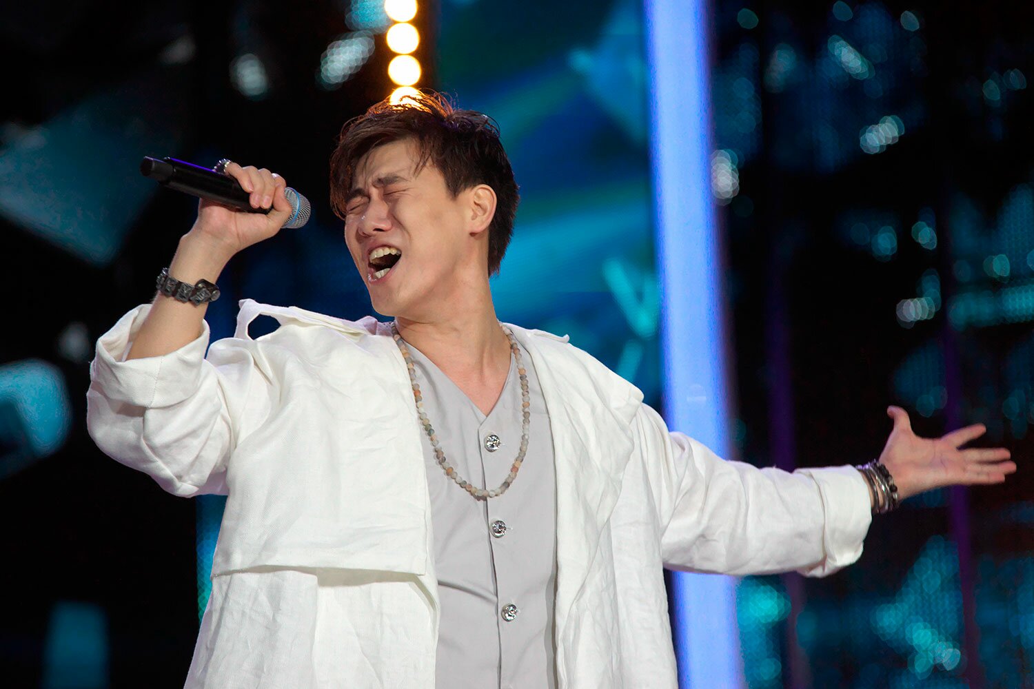 Украинец Дмитрий Бабак спел «Кони привередливые» Владимира Высоцкого, получив высшие оценки у пяти из девяти судей, остальные поставили на балл меньше.