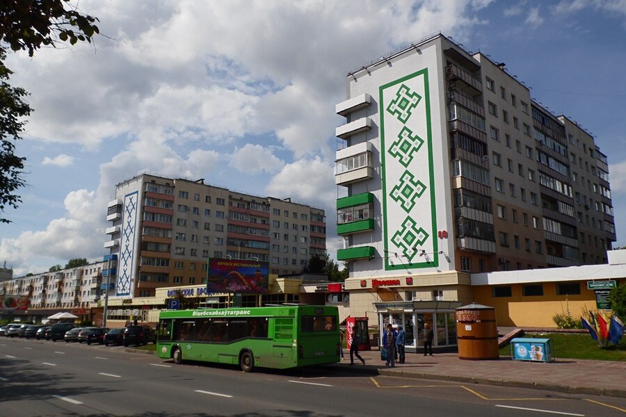 На Московском проспекте в Витебске дома расписали традиционным белорусским орнаментом.