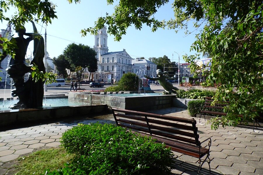 Возле фонтана напротив городской ратуши установили четыре скамейки, три из них располагаются в непосредственной близости от фонтана. По словам горожан, попробовавших на них посидеть, это место периодически обдает брызгами от фонтана.