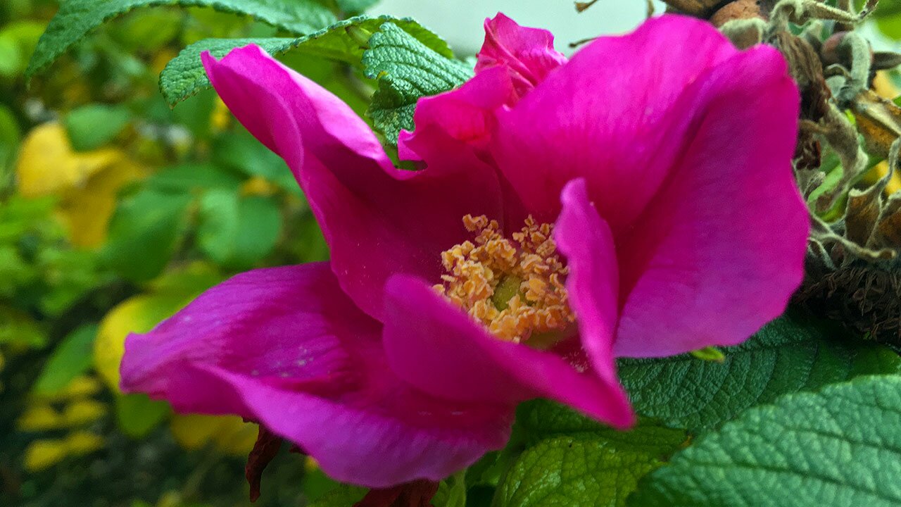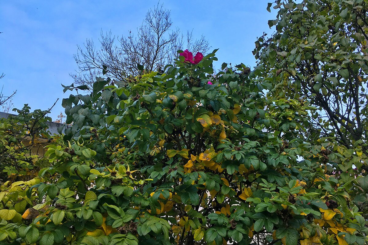 Правда, это Rosa rugosa — шиповник морщинистый, родиной которого является Дальний Восток. Это растение имеет так называемое свойство ремонтантности, то есть кустарник, который обычно цветет в июне-июле, при благоприятных условиях способен цвести и плодоносить и глубокой осенью.