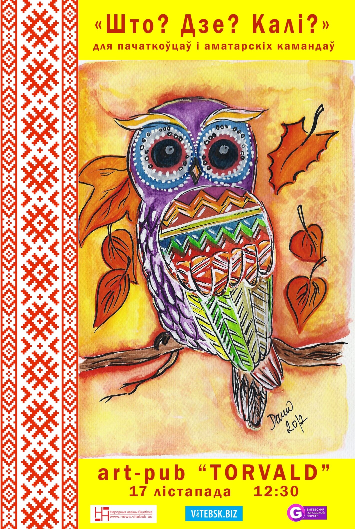 Запрашаем вас у нядзелю, 17 лістапада, а 12:30 узяць удзел у інтэлектуальнай гульні «Што? Дзе? Калі?», якая праводзіцца ў мэтах папулярызацыі беларускай мовы, культуры і інтэлектуальных гульняў у цэлым.