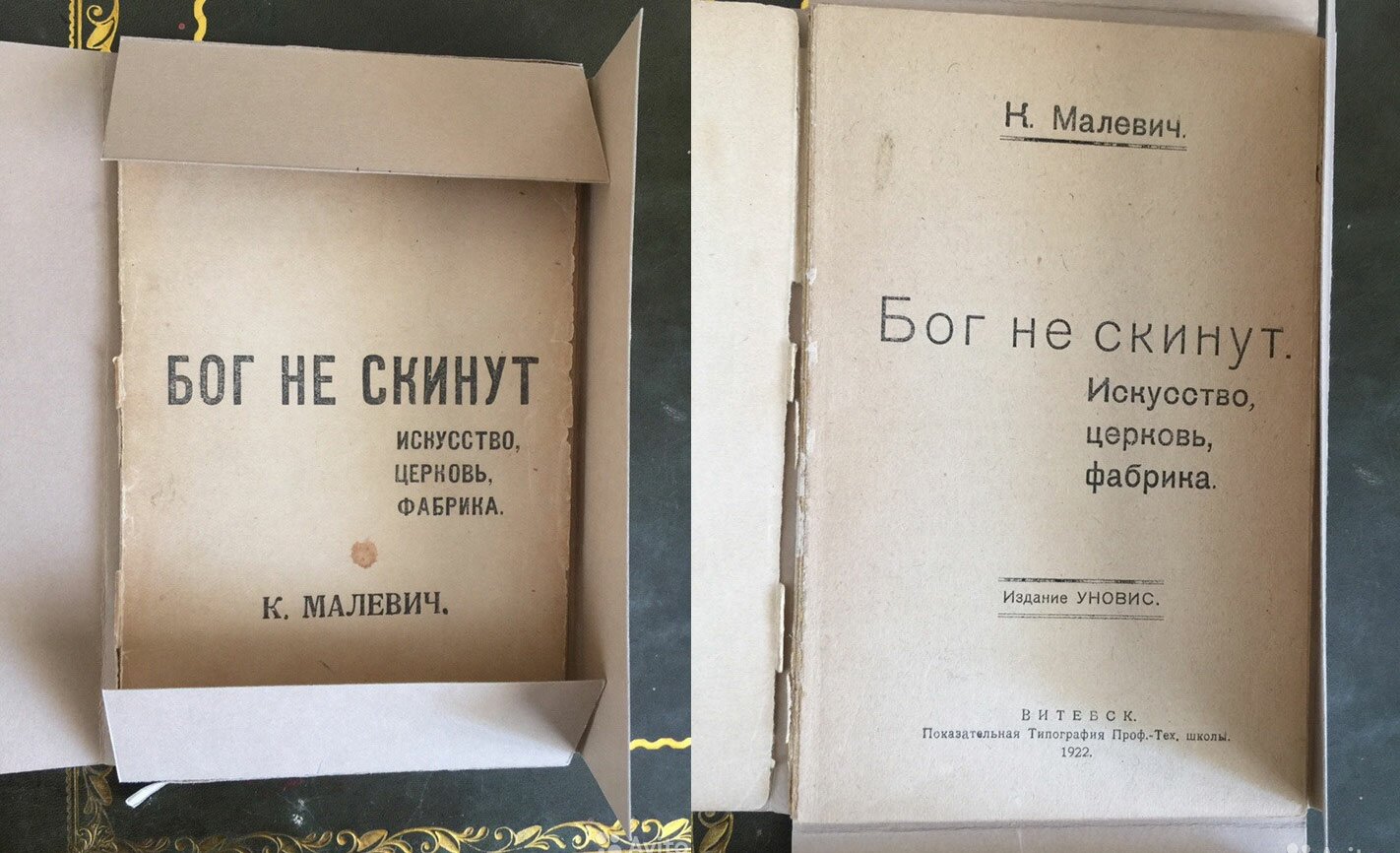 Редкая книга Казимира Малевича «Бог не скинут. Искусство, церковь, фабрика», изданная в Витебске в 1922 году, продается в Москве.