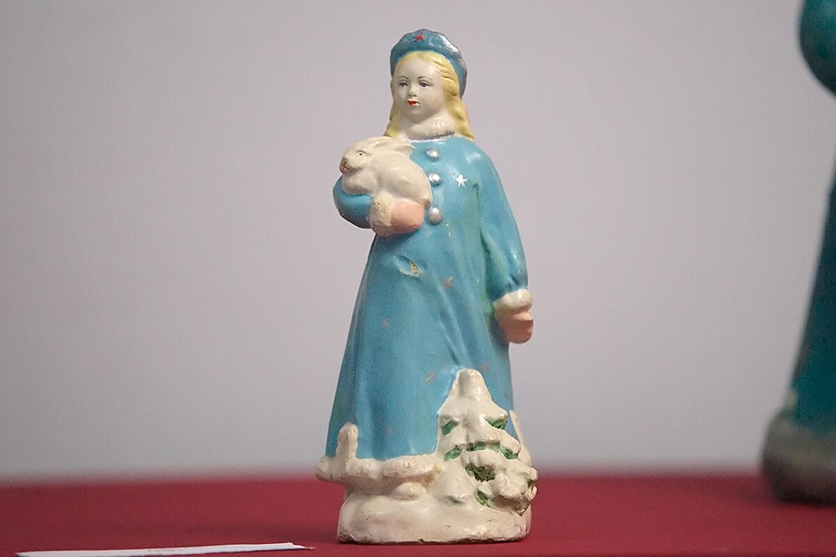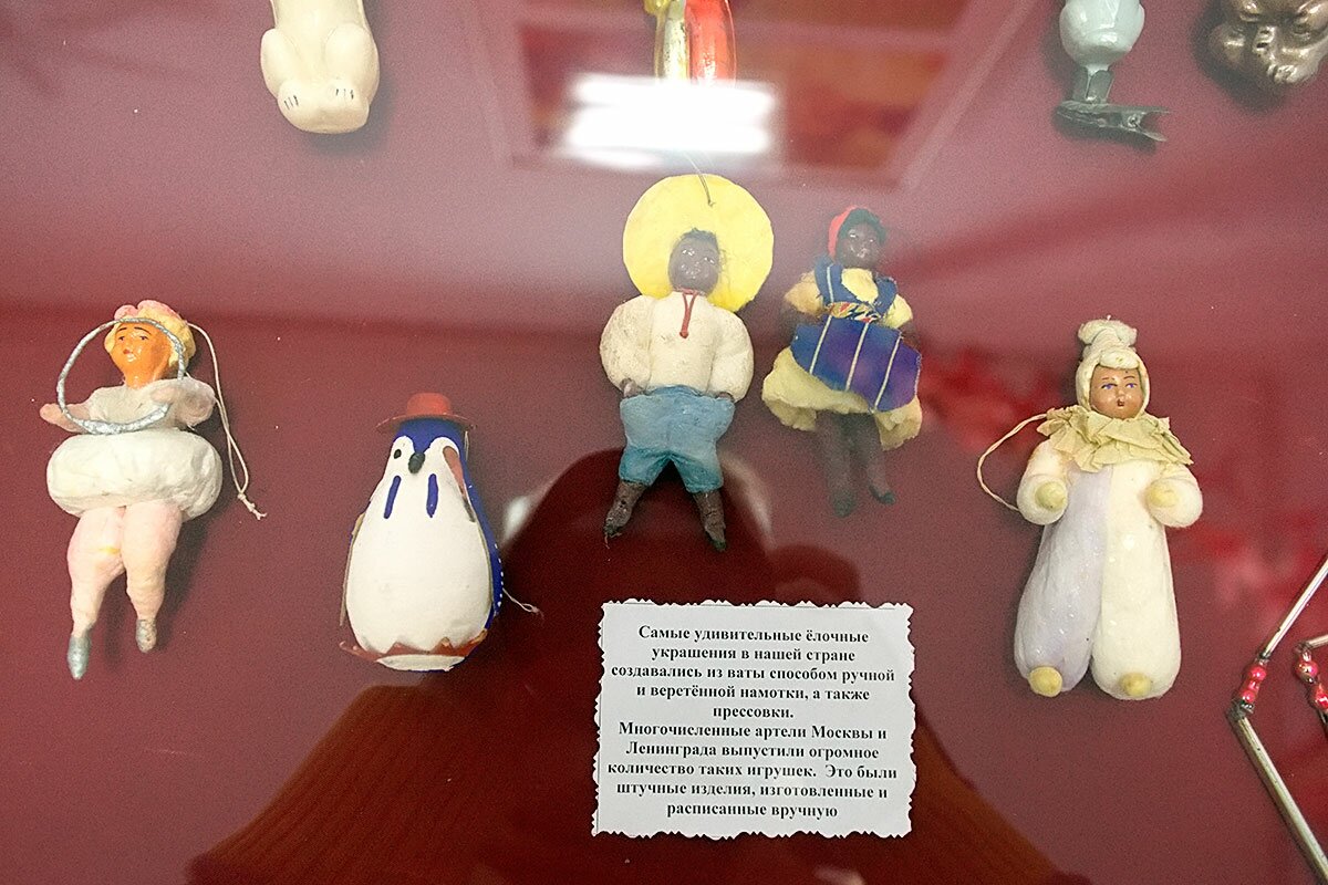 Также выставлены репродукции новогодних афиш, плакатов и иллюстраций известных сказок, связанных по тематике с елочными игрушками, коллекции подставных игрушек Дед Мороз и Снегурочка и т.п.