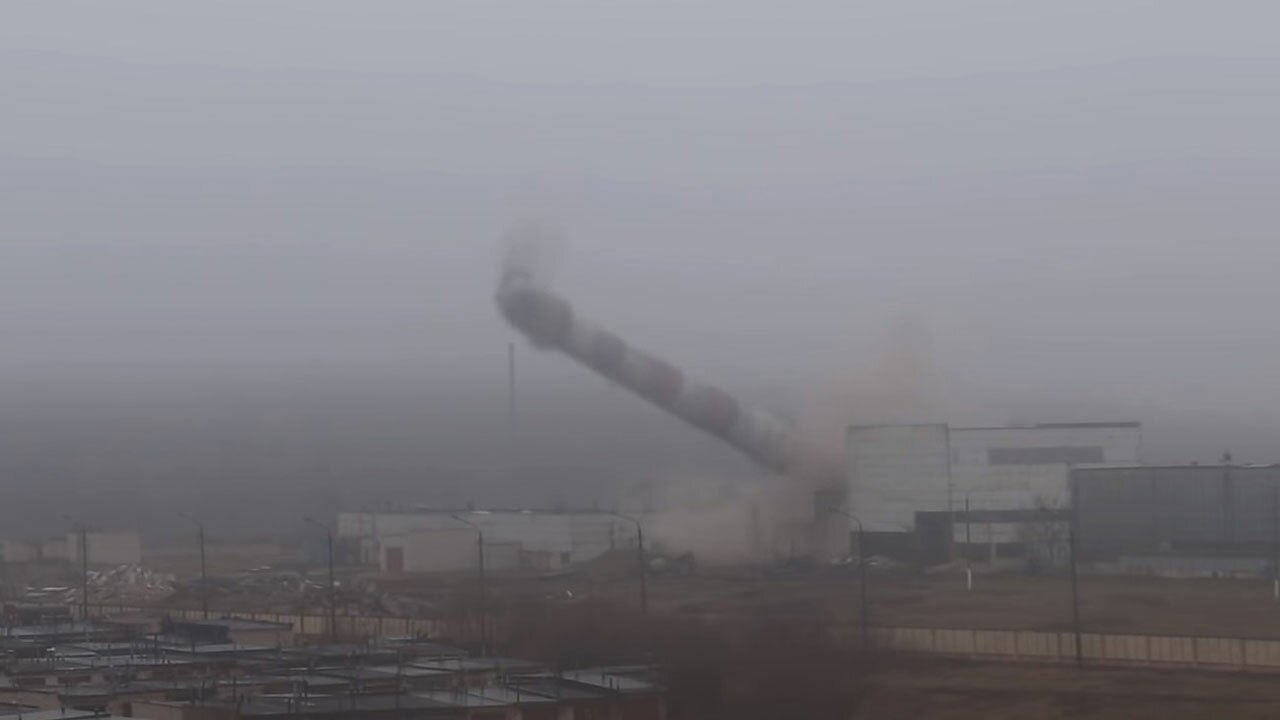 Взрыв в тумане — как в Орше сносят конструкции советских заводов. Видео