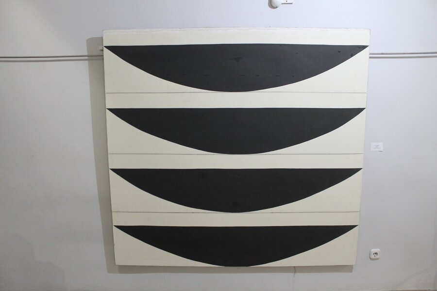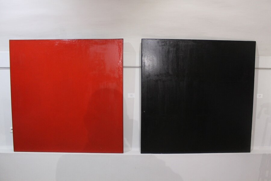 "Квадрат, как гармоничная, самодостаточная форма, красной нитью прошёл через моё творчество в Витебске, включая импровизации на тему работ Казимира Малевича. В 1993 году я создаю первую серию «квадратов»: красный, зелёный, жёлтый и синий, обведённые чёрной линией на белом фоне. В 1994 году родился диптих "Три совмещённые фигуры, это чёрный квадрат холста, красный (синий) ромб, перечёркнутый чёрным крестом."