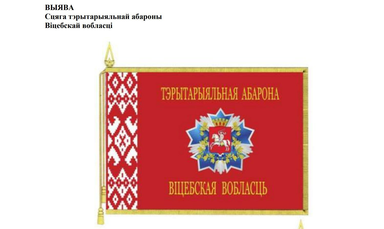 Согласно этому войска территориальной обороны Витебской области получили флаг с изображением Погони. Древний символ Беларуси расположен в центре полотнища.