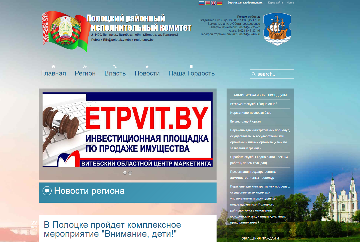 Согласно техническому заданию новый сайт райисполкому потребовался для следующих задач: