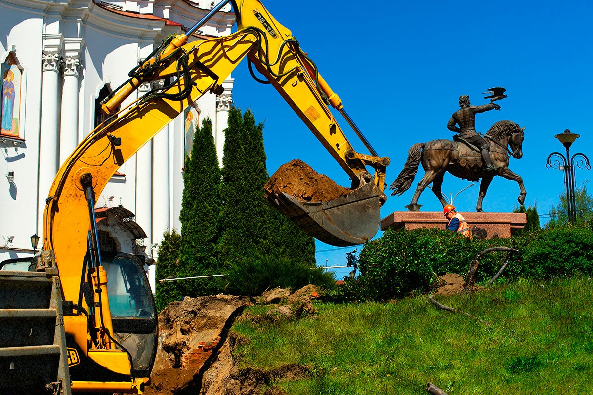 Старинные своды, которые откопали при прокладке траншеи теплотрассы, разрушат, а уцелевшее помещение гостиницы Брози, которое вскрыл экскаватор, опять завалили. Что происходит в историческом центре Витебска?