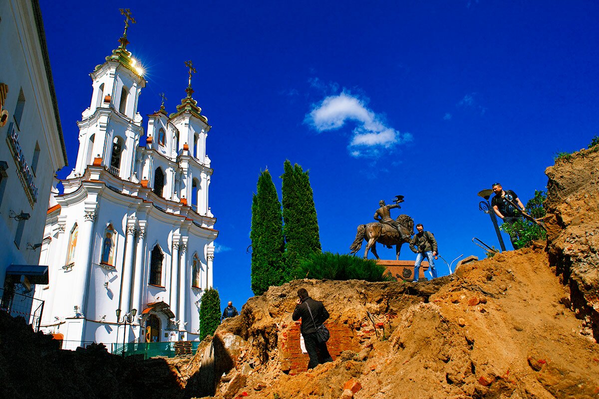 23 мая земляные работы в начале улицы Толстого напротив Воскресенской церкви продолжились. Если днем ранее экскаватор прокопал траншею вдоль стены здания «Белагропромбанка», обнажив стены здания, стоявшего между гостиницей Брози и сохранившимся домом, а также загадочные своды со стороны церкви, то в этот день техника начала копать в сторону улицы Ленина.