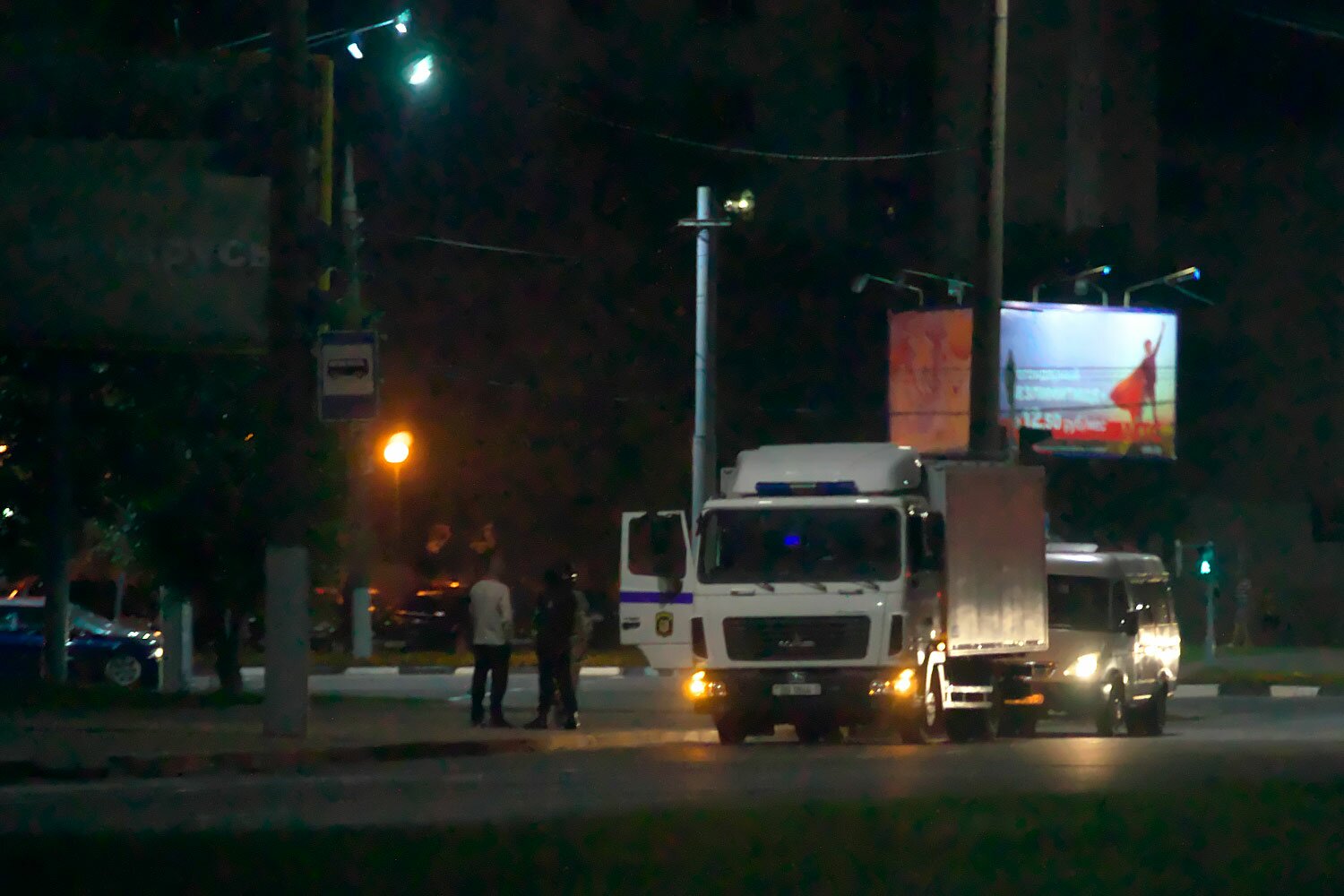 После окончания выборов на улицах Витебска начались задержания. Людей хватают силовики в форме цвета хаки, бронежилетах и защитной экипировке, часть улиц перекрыта.