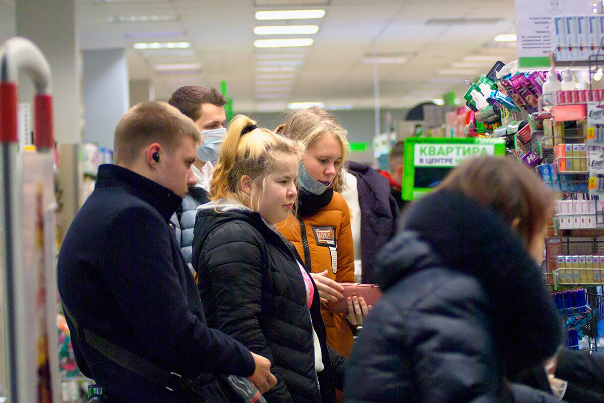 Посетителей без масок или респираторов можно было наблюдать во всех посещенных магазинах. При этом далеко не на всех объектах торговли к этому времени успели появиться объявления о необходимости ношения СИЗ. Покупатели в очередях также практически не соблюдают безопасную дистанцию в 1,5 метра.