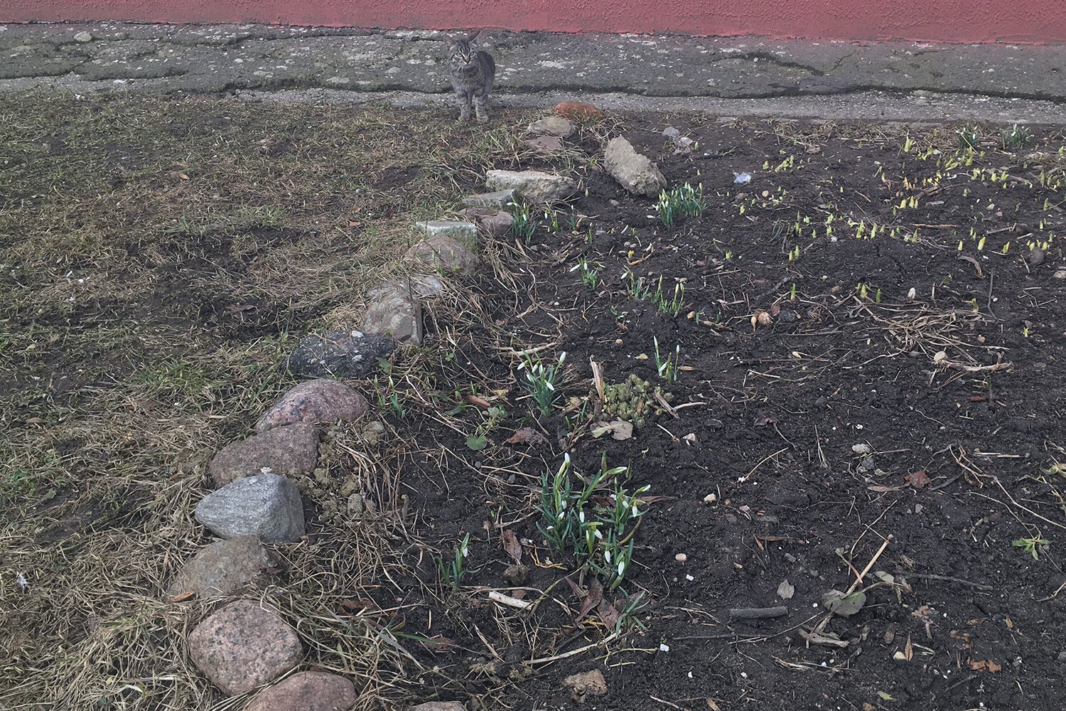 Цветки только начинают распускаться, клумбы с ними находятся на северной стороне проспекта — туда больше попадает солнца. Цветущие подснежники можно увидеть возле домов №60 (детская библиотека) и №64.