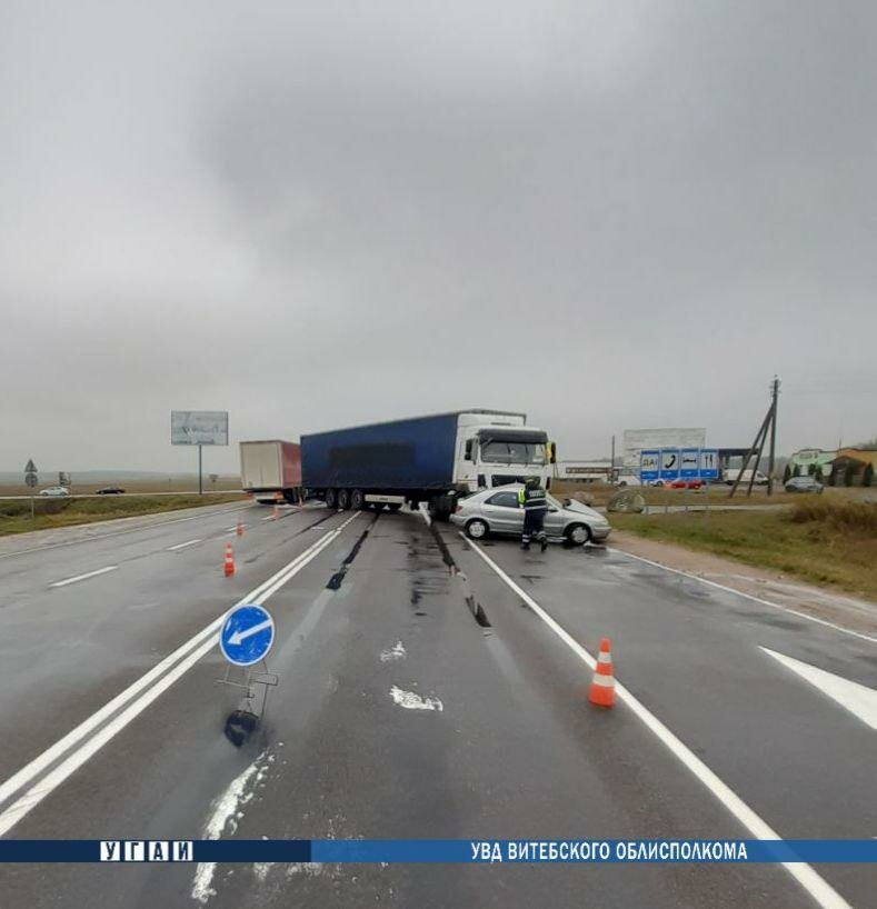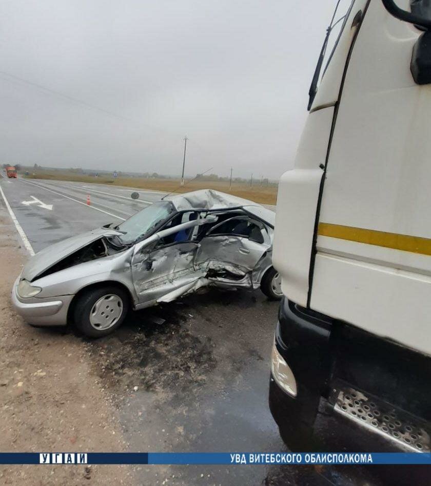 Около 14:00 на 135 километре трассы «Полоцк — Глубокое — граница Литвы» легковой автомобиль «Citroen», за рулем которого находилась 59-летняя женщина, столкнулся с большегрузом «МАЗ», которым управлял 42-летний шофер.