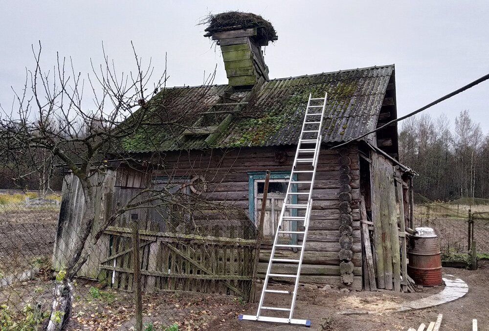 У бабушки из деревни Кветча Лепельского района грозила обрушиться буслянка, где вывелось не одно поколение аистят. На помощь пожилой сельчанке пришел Березинский биосферный заповедник.