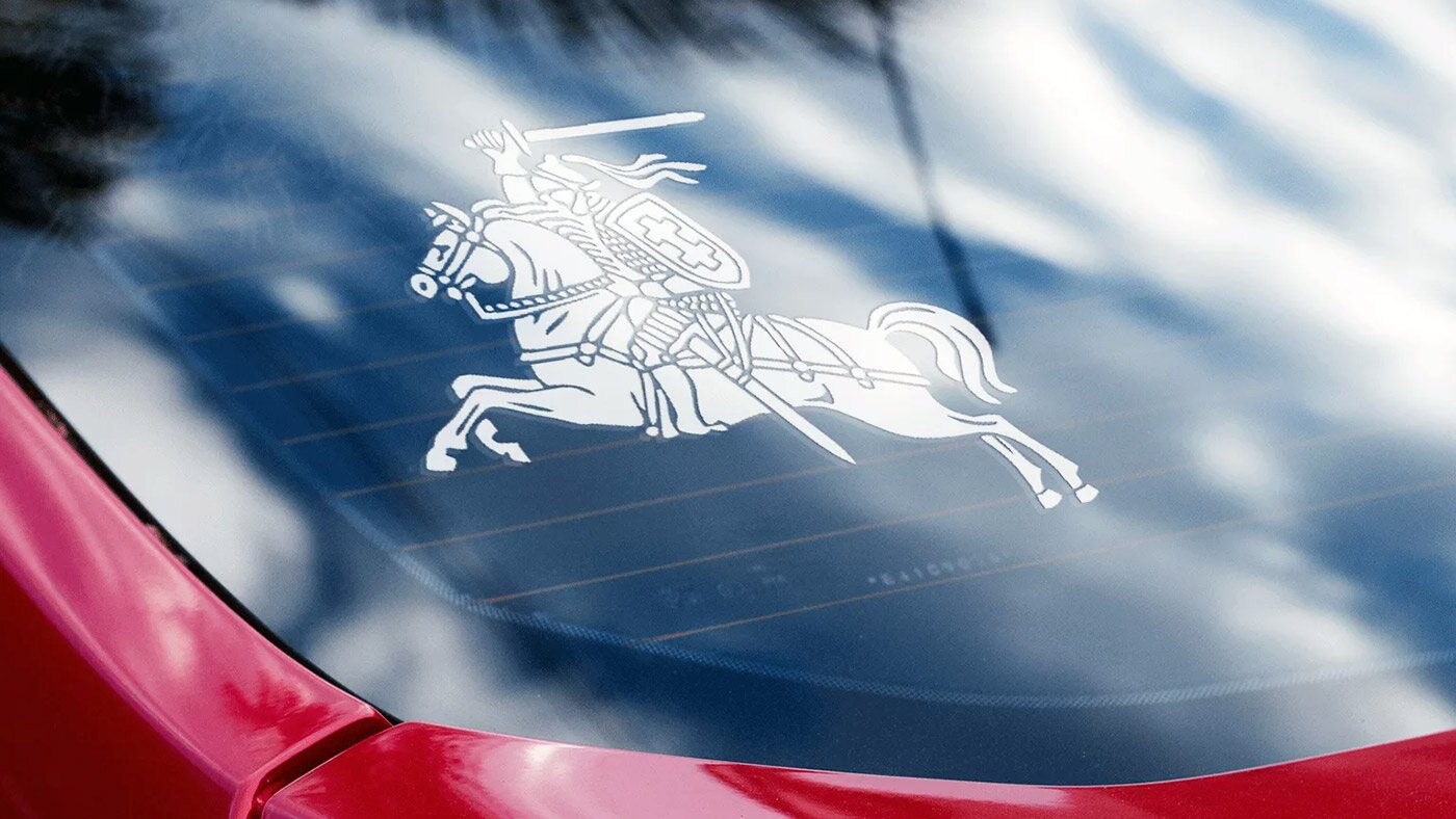 Наклейку с изображением Погони в виде герба Литвы на автомобиле врача заметили 14 октября. 20 октября легковушку осмотрели и составили протокол за нарушение порядка организации или проведения массовых мероприятий (24.23 КоАП).
